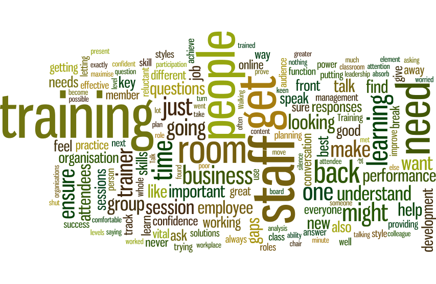This doesn’t mean empty your vault of hilarious clip-art, moving quotes on scenic backgrounds, and the latest memes. Instead it means to incorporate as many different visual aids as you can (fig. 2). Video, brainstorming, mind-maps, Wordles (fig. 3), lists and sketches can boost the effectiveness of your message and help sustain interest in participants who may be tempted to stray from training to answer an email or respond to external stimulus, like phone calls and office visitors.