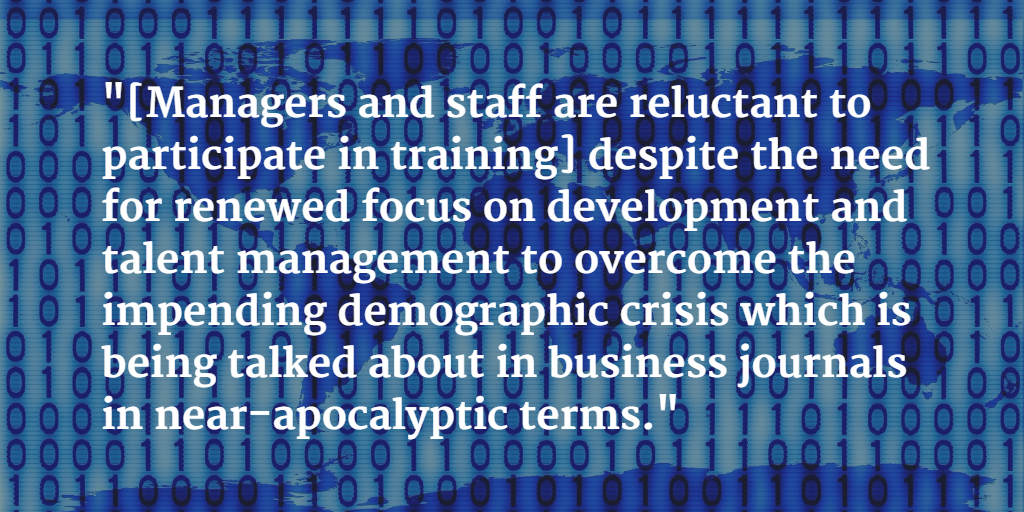 Learning and Development has been suffering a crisis of credibility which shows no signs of abating. The latest findings from the Towards Maturity L&D benchmarking survey make for worrying reading: there is a striking perceived reluctance from line managers (62%) and reluctance from learners (47%) to participate in development opportunities, while only one third of L&D departments are achieving their goals (1). This is despite the need for renewed focus on development and talent management to overcome the impending demographic crisis which is being talked about in business journals in near-apocalyptic terms. With the retirement of the boomers and statistics that exemplify impending knowledge gaps at the highest levels of businesses, there is doubt that Millennials and Gen Z will be able to compensate for wide-spread loss of knowledge capital. In the US alone, 66% of all businesses with employees, numbering almost 4 million businesses, are owned by Baby Boomers (2), while 54% of business leaders are already reporting damage to their business due to talent shortages (3).