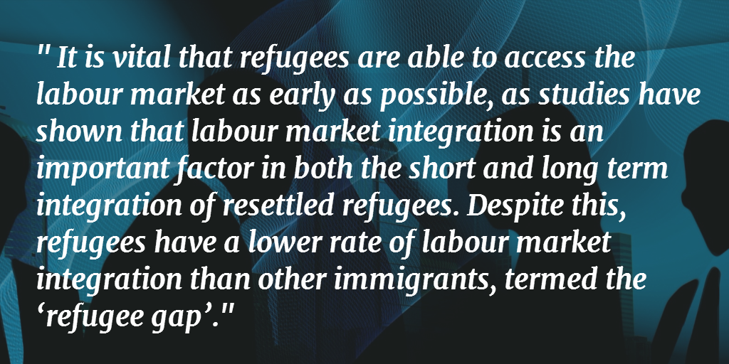 So how do economies utilise the skills and knowledge of refugees? How do we, as an industry, assist those entering our workforces to develop themselves in a manner which will ensure their ability to participate in and contribute to their field, and utilise their skills once they have been resettled? It is vital that refugees are able to access the labour market as early as possible, as studies have shown that labour market integration is an important factor in both the short and long term integration of resettled refugees. Despite this, refugees have a lower rate of labour market integration than other immigrants, termed the ‘refugee gap’ (2).