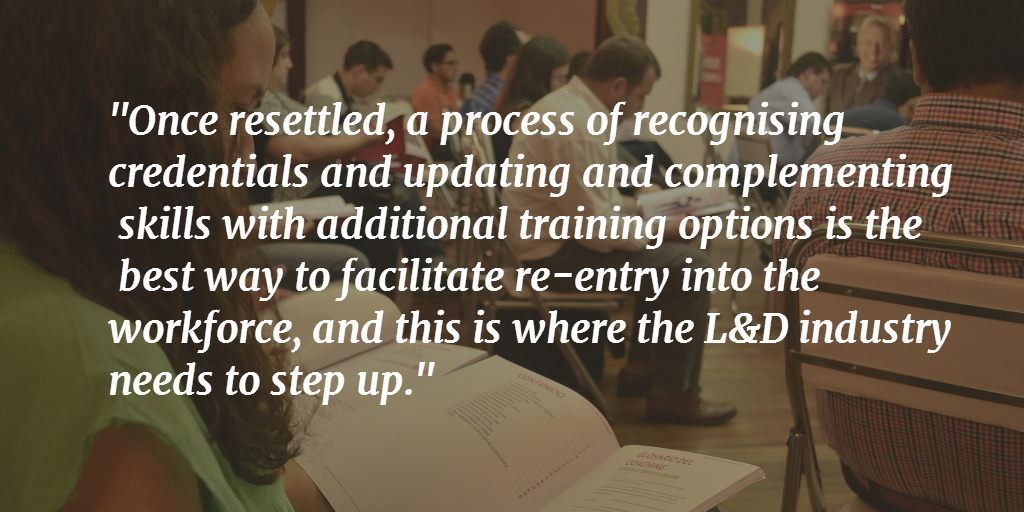 Once resettled, a process of recognising credentials and updating and complementing skills with additional training options is the best way to facilitate re-entry into the workforce, and this is where the L&D industry needs to step up. Just because refugees are skilled and educated in systems that are not aligned to those in the OECD does not mean that these skills and knowledge are unusable. Indeed, the opposite is true. With appropriate training that bridges the divide, there is no reason why refugees cannot utilise their skills and experience in a labour market that is undergoing rapid change requiring all the knowledge and skills capital it can get its hands on.